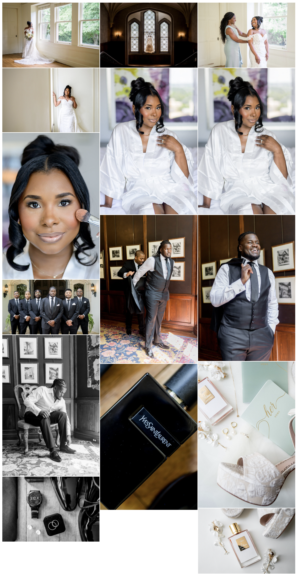 Inside the reception ballroom, the space was transformed with lush floral designs, including towering arrangements framing the estate table so every guest could take in the beauty of the room. As dinner concluded, the energy shifted into celebration mode. DJ Tay set the soundtrack for the night, keeping the dance floor full while friends and family danced, laughed, and celebrated without pause. The evening ended with a stylish send-off as Dominique and David departed in a classic Rolls Royce, closing out a day that felt effortless, joyful, and unforgettable.